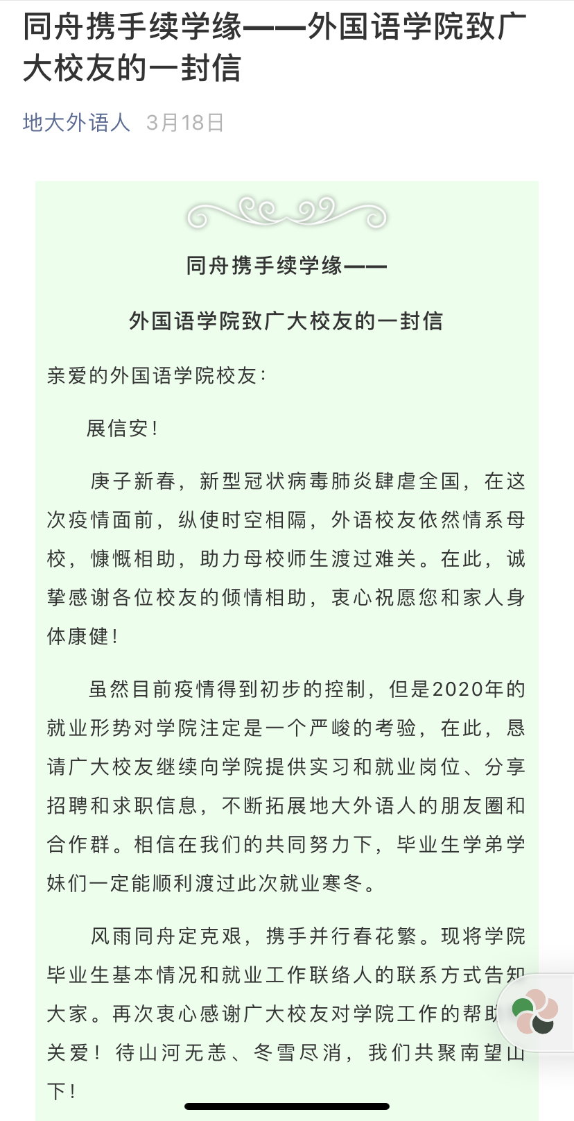 bat365中文官方网站促进2020届毕业生充分就业工作方案        致校友的一封信