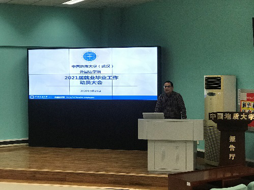 (通讯员、摄影 赵润东)2020年9月24日16:30,bat365中文官方网站2021届毕业就业工作动员会于北一楼报告厅召开,bat365中文官方网站党委书记张基得、副书记胡文勤、英语系党支部书记李慷、091172班班主任姚夏晶、091174班班主任高幸和学生工作组李海涵以及2021届本研全体毕业生出席了此次动员会,李海涵老师负责本次会议主持工作。