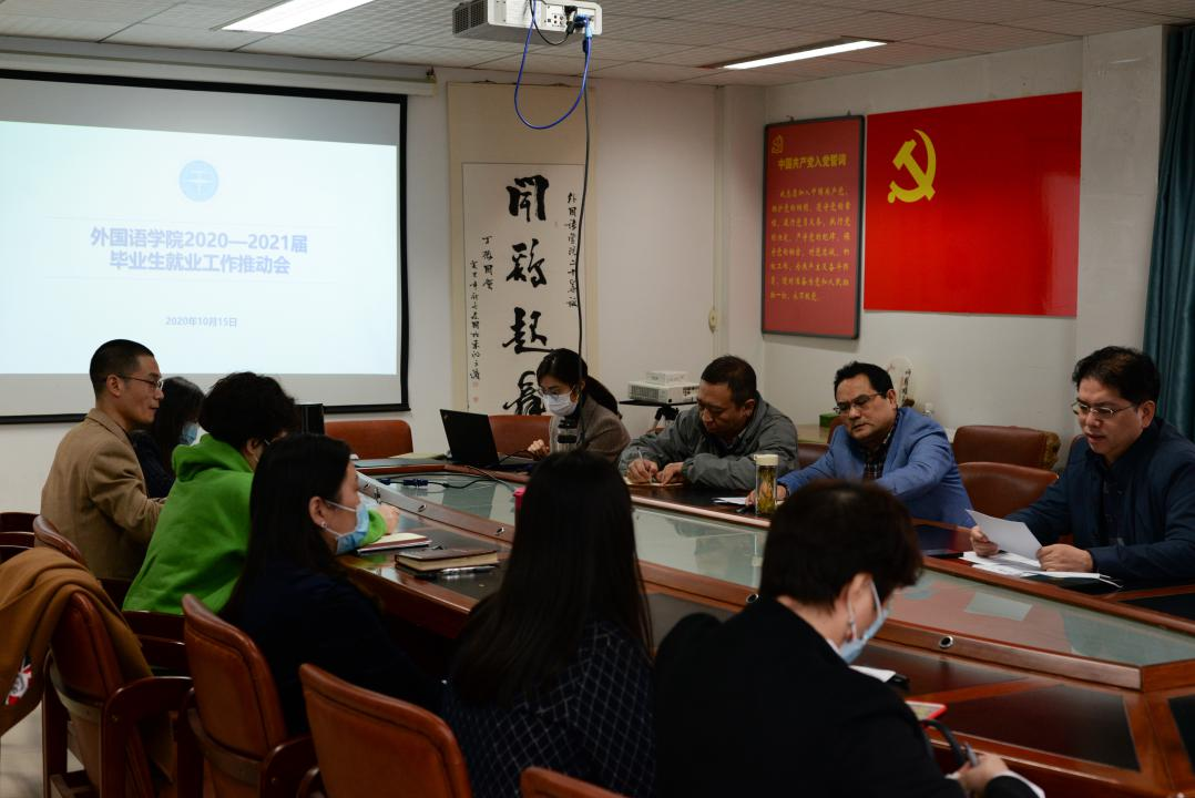 10月15日下午,bat365中文官方网站在北一楼会议室召开2020-2021届毕业生就业工作推进会,学院党政联席会成员、各三级单位主要负责人、硕士毕业生导师代表、本科毕业班班主任、辅导员参与会议。学院党委副书记胡文勤主持会议。