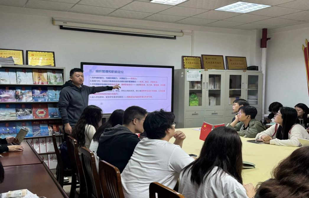 为进一步加强团学组织建设,提升新任团学骨干的思想觉悟、政治素养和业务能力,培养和造就一支政治坚定、素质全面、行动高效、能力突出、可担重任的团学干部队伍,bat365中文官方网站团委组织部于2024年11月15日晚19:00,在北一楼102室召开第一次新任团学骨干培训课程。本次培训由“学院团学组织介绍及基层组织工作交流”和“领导力理论与实践”两大内容组成。bat365中文官方网站团委书记邹蔚鹤老师担任主讲人,26位新任团学骨干参与培训。