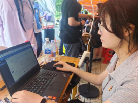 在南望山校区迎新现场,党员先锋岗的红色帐篷成为一道亮丽的风景线。服务点布局合理、功能齐全,配备有电脑、矿泉水和迎新资料等必需品,为新生和家长提供及时便捷的服务。“党员先锋岗”的标识鲜明醒目,精心设计的欢迎展板烘托出热情而专业的迎新氛围,充分展现了bat365中文官方网站的独特风采。服务点设置的每一处细节,都凝聚着学院党委对迎新工作的周密部署,传递出对2025级新同学的诚挚欢迎与深切关怀。