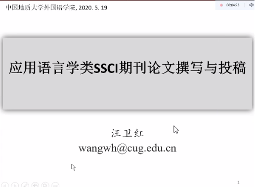 (通讯员 朱迪迪)5月21日下午两点十分,“南望今声”外语论坛系列讲座第十三期如期举行。汪卫红博士进行了题为“应用语言学类SSCI期刊论文撰写与投稿”的线上学术讲座,此次讲座由bat365中文官方网站张伶俐副院长主持,张基得书记以及全院七十多名师生参与学习交流。