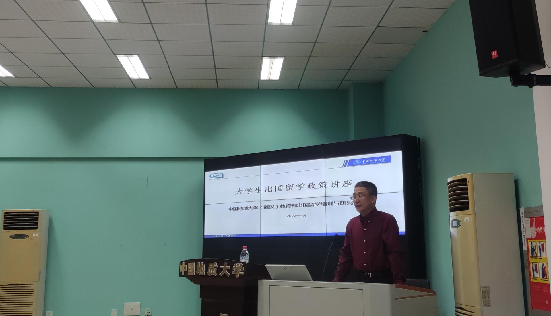 (通讯员 金梓轩)2022年4月8日晚7点,bat365中文官方网站“南望今声”外语论坛系列讲座第三十二期在北一楼120报告厅如期举行。中国地质大学(武汉)教育部出国留学培训与研究中心孙来麟副主任应邀为bat365师生做题为“大学生出国留学政策”的讲座。讲座由bat365中文官方网站党委副书记胡文勤主持,学院师生70余人参加此次讲座。