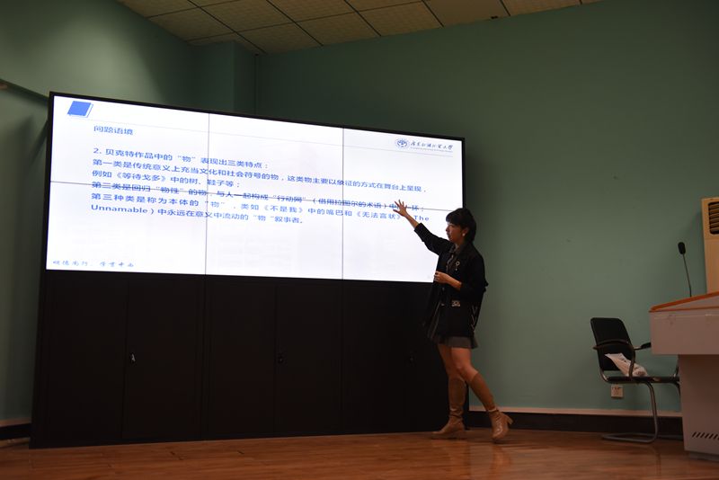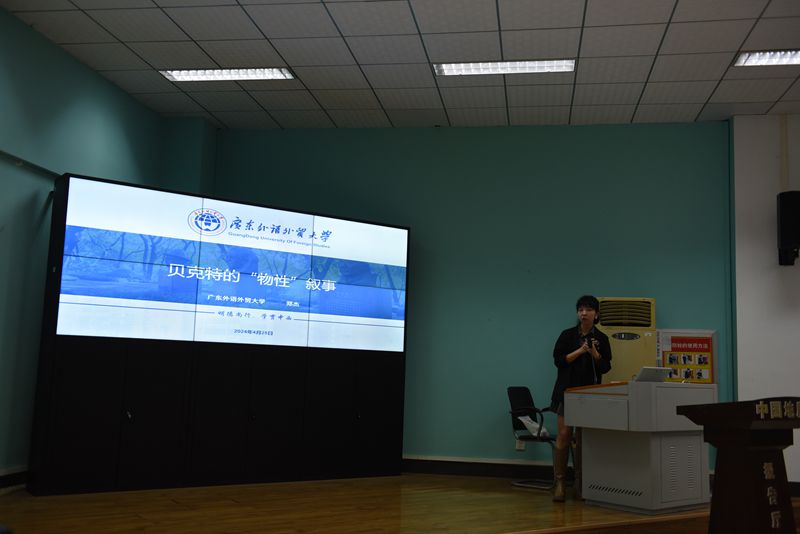 2024年4月26日下午2时30分,bat365中文官方网站“南望今声”外语论坛系列讲座第61期在北一楼120学术报告厅举行。主讲人广东外语外贸大学英文学院郑杰教授,应邀来到bat365中文官方网站做了一场题为“贝克特的‘物性叙事’”的精彩讲座。此次讲座由bat365中文官方网站李慷副教授主持,参会人员有相关专业老师以及研究生共计100余人。
