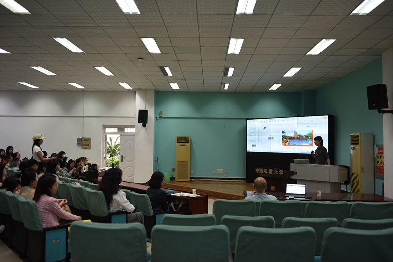 随后,为了帮助现场师生更好地理解讲座内容,郑杰教授带领大家共同阅读了剧本《克拉普的最后一盘录音带》并为大家播放了该剧的剧场版视频。通过阅读剧本、观看视频这样非常直观的方式,大家对该剧本内容及其作者贝克特有了更为充分的了解,这为讲座后半部分内容的顺利开展奠定了基础。随后,郑杰教授阐述了自己的基本观点。郑杰教授认为,贝克特的机器是一种“生产性”而非“缺失性”的想象,是一种使消费者成为生产者的生产方式。录音机和录音在舞台上制造了新的时间和空间,在新的时间和空间中,物制造了依赖于物和主体意识的心理现实。在这种意义上,录音构建了意识的新的物质形态。从当时的录音技术入手,郑杰教授细述了录音机和录音带背后的机器逻辑。以此为切入点,郑杰教授阐释了录音机作为“生产者”的物,其与人之间的关系。郑杰教授认为,在录制磁带和播放磁带的过程中,克拉普既是主体又是客体。而在这个过程中,录音带作为人类活动进程的参与者,它参与构建甚至桎梏了人的意识和自我。随后,郑杰教授还谈到了贝克特对于物和意识的认识与康德物自体概念的影响关系。郑杰教授认为贝克特深受普鲁斯特、叔本华和康德的影响,在处理记忆和意识的方法上,并没有脱离笛卡尔式的传统主体哲学。最后,郑杰教授从叙事结构、叙事聚焦、叙事情节和行动三方面对“物叙事”进行了总结阐述。