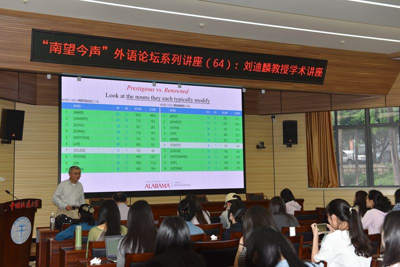2024年5月31日上午8时,bat365中文官方网站在东区八角楼报告厅成功举办了“南望今声”外语论坛系列讲座第64期。阿拉巴马大学(University of Alabama)英语系荣休教授刘迪鳞教授,应邀来到bat365中文官方网站做了一场题为Using corpora to enhance appropriate and precise lexicogrammar use in academic writing”的精彩讲座。此次讲座由bat365中文官方网站张伶俐副院长主持,参会人员有相关专业老师以及研究生共计100余人。