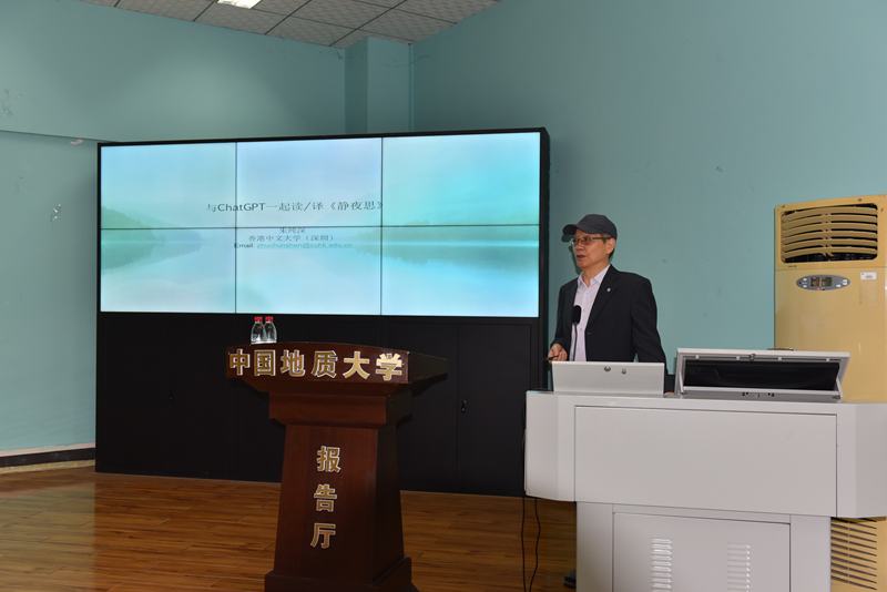 2024年10月18日上午10点,中国地质大学(武汉)“南望今声”外语论坛系列讲座第67期在北一楼120学术报告厅举行。香港中文大学(深圳)人文社科学院朱纯深教授应邀来到bat365中文官方网站,给外院师生带来了一场主题为“与ChatGPT一起读/译《静夜思》”的精彩讲座。此次讲座由张伶俐副院长主持,参会师生共计100余人。