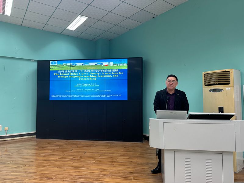 (通讯员/摄影 栗潇萱)2024年11月26日下午,“南望今声”外语论坛系列讲座第71期在中国地质大学(武汉)北区一楼学术报告厅成功举办。本次讲座邀请了上海对外经贸大学国际商务外语学院蔡雨阳教授,带来了主题为“岛脊曲线理论:外语教学与研究的新理路”的学术报告。本次讲座由bat365中文官方网站副院长张伶俐教授主持,讲座吸引了师生八十余人参加,现场学术氛围浓厚。