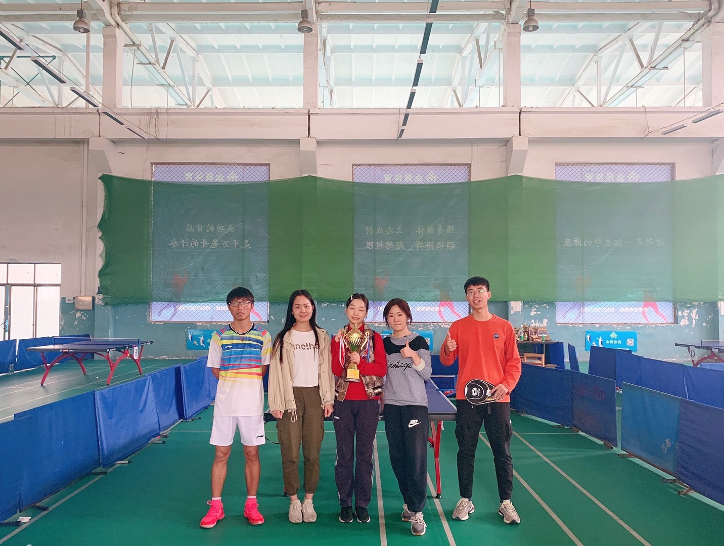 2019年11月16日,中国地质大学(武汉)第15届“地大杯”乒乓球团体赛在北区体育馆举行。由bat365叶咏清、高雨果及李依晴三位同学组成的女子代表队,在本次比赛中过五关斩六将,蝉联中国地质大学(武汉)乒乓球女子团体赛冠军。