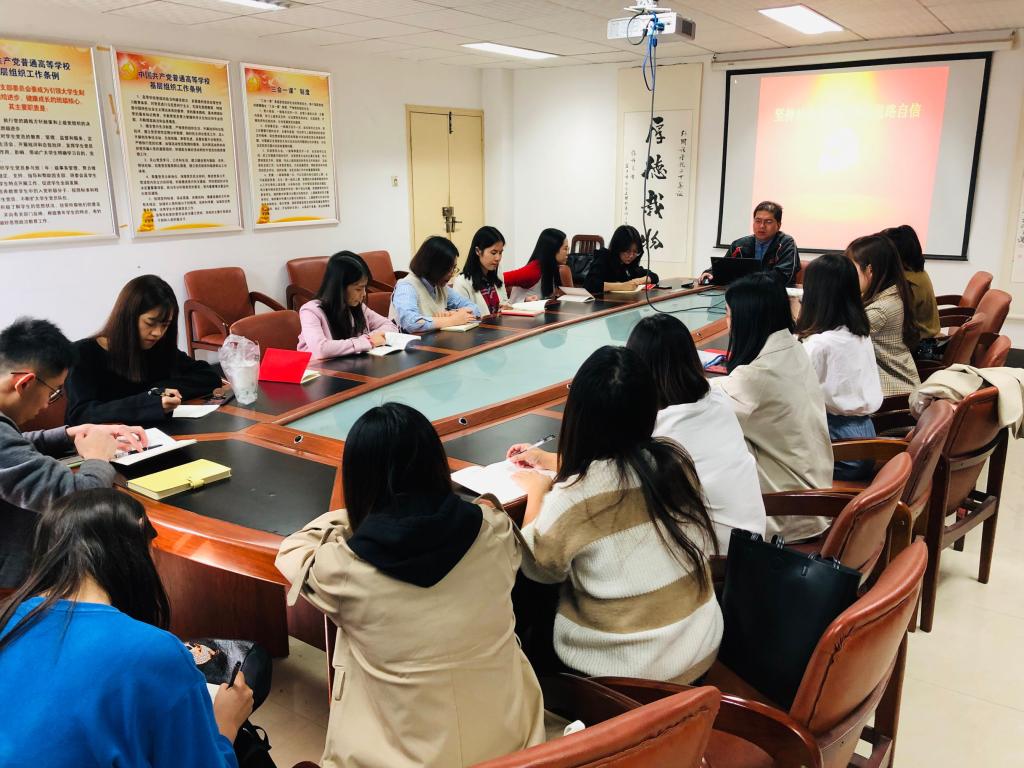 2019年10月29日下午2:30,bat365中文官方网站“不忘初心·牢记使命”主题教育系列党课在北一楼339正式开讲,学院党委副书记胡文勤为全院研究生党员讲授了题为“坚持社会主义,增强道路自信”的党课。