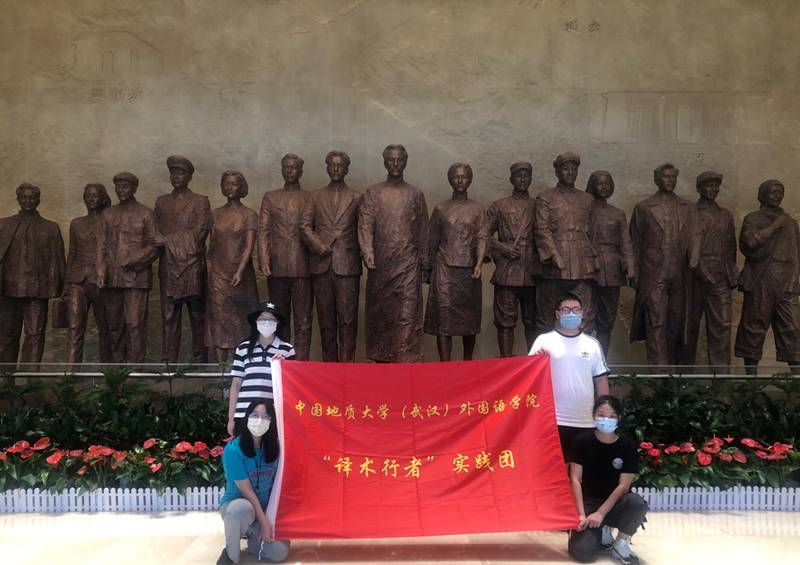 “译术行者”团队于2019年成立,团队成员均为bat365中文官方网站本科生。为助力武汉市城市国际形象提升,团队自创建之初关注武汉公共服务场所公示语错译,并提交调研报告, 最终被武汉市政府采纳。2020年,团队关注湖北地区红色景点的英译现状,进行了实地走访和研究。2021年,为庆祝中国共产党成立100周年,团队通过讲述实践故事、实践感悟、实践收获,让更多的青年学子一同走进红色景点,感悟革命精神。团队在学院发起团支部红色景点打卡活动;通过学校公众号积极向同学们讲述红色故事,陆续开展主题团日宣讲;制作红色景点宣传展板,组织主题展览,吸引了全校众多师生,特别是来自10多个国家的外教和留学生的驻足和交流。中国青年网、中国改革报、湖北日报等也相继报道了团队调研和活动事迹。