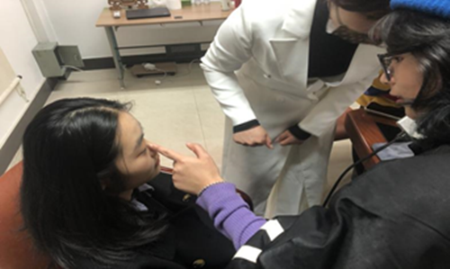 最后,同学们根据本次讲座所学,用自己的化妆品展开了美妆实战,姚娟老师及助理老师在同学们化妆时一一指导其手法,指出其错误,并进行手法的示范,让同学们收获颇丰。在最后的进程中,化好妆的同学一一到老师面前展示,老师根据其妆面的效果进行评价,指出其优点供大家参考学习,点明其不足让同学们加以改正。