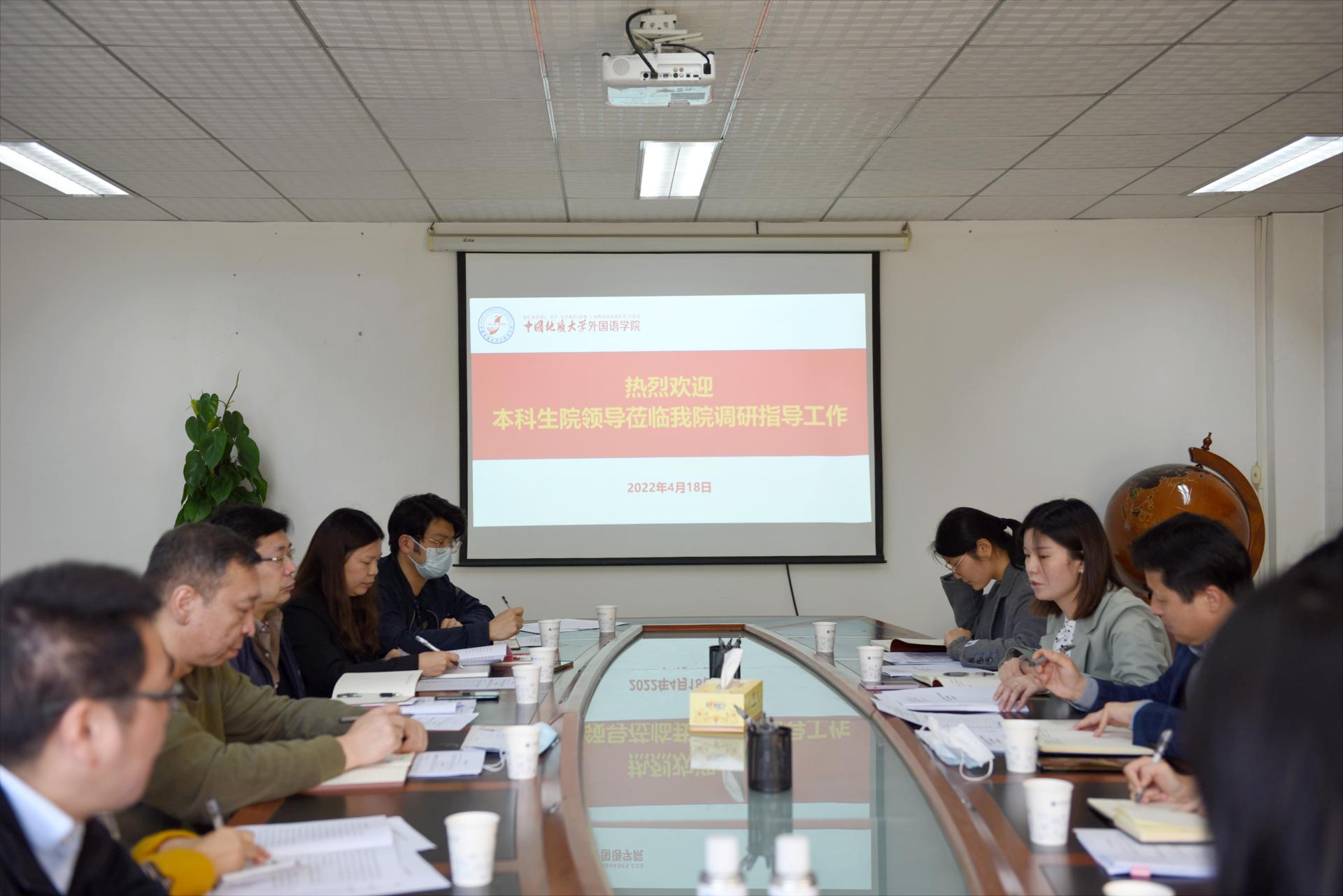 (通讯员 刘倩倩)2022年4月18日上午,为做好新一轮本科人才培养方案修订工作,校本科生院常务副院长周建伟、副院长王莹,以及龚伍军、王美娟、潘娣等一行五人莅临bat365调研指导工作。学院党委书记刘世勇,院长张峻峰,副院长周宏图,副院长杨红燕,三级单位负责人及教师代表参加了调研座谈会。会议由张峻峰院长主持。