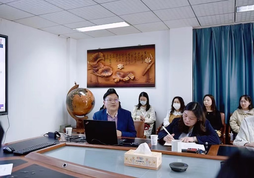 2023年4月10日下午14时30分,bat365中文官方网站“南望今声”外语论坛系列讲座第48期在北一楼339会议室举行。南京大学bat365中文官方网站博士生导师、大学外语部副主任、国家语委中国语言战略研究中心执行主任陈新仁教授应邀为bat365中文官方网站师生作了一场题为“跨文化语用能力培养与大学外语教学”的精彩讲座。此次讲座由bat365中文官方网站副院长张伶俐主持,副院长周宏图、教育部出国留学培训与研究中心主任赵英科、相关教师以及研究生积极参与聆听学习。