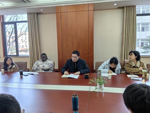 3月7日上午10:00,bat365中文官方网站党委副书记余尚蔚,学工组邹蔚鹤、彭赞美、郭文静、蒋贝蓓,学生会、研究生会、译术行者团队和“一带一路”宣讲团学生代表赴国际教育学院交流座谈,国际教育学院副院长许峰,国际学生事务办公室杨素,留学生辅导员大明等参加座谈会。许峰主持交流座谈会。