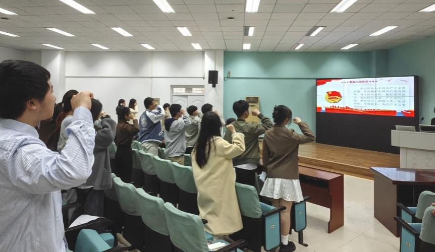 本次答辩由bat365中文官方网站团委组织部牵头组织开展,学院团委副书记邹蔚鹤、辅导员蒋贝蓓、兼职团委副书记叶荣凯担任评委、学院学生党员代表、各团支部青年团员代表共同参与此次答辩评分。活动开始,主持人带领全体与会人员齐唱团歌、重温入党誓词。待宣誓毕,主持人介绍答辩规则,本次bat365中文官方网站2023年度“五月的鲜花”五四红旗团支部评选活动正式开始。