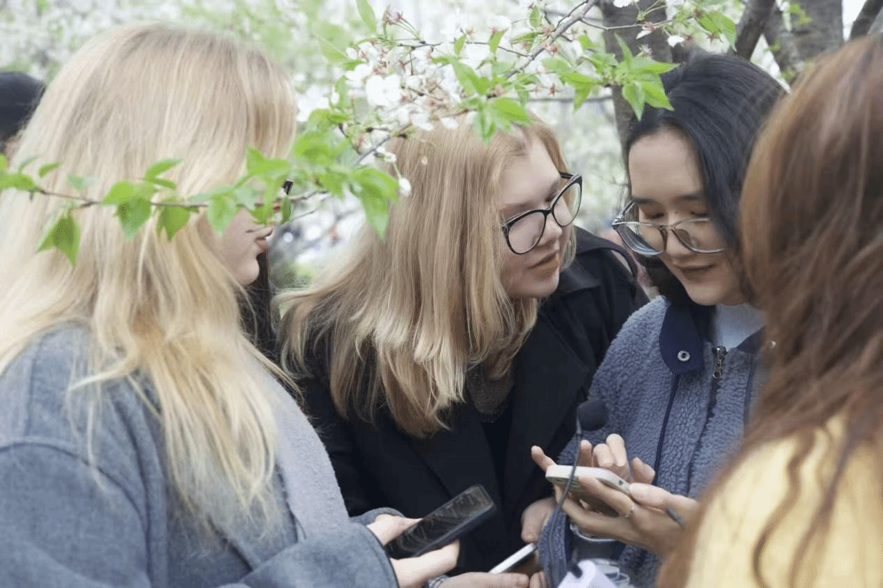 紫荆花下,欢声笑语不断,这一温馨场景,是 “讲好中国故事” 的鲜活缩影。在“寻芳记”环节中,中国学生巧妙引用 “投我以木桃,报之以琼瑶”,阐释海棠花的寓意,于无形中传递中华文化 “感恩与回馈” 的传统美德。现场还增设 “红色花语” 解读环节,赋予花卉独特的精神内涵:樱花象征 “希望与复兴”,梨花寓意 “纯洁与奉献”,将花卉自然之美与红色文化紧密融合,让青年学子在赏花过程中,深刻领略红色文化的魅力与生命力,促使红色文化在新时代绽放新的光芒。