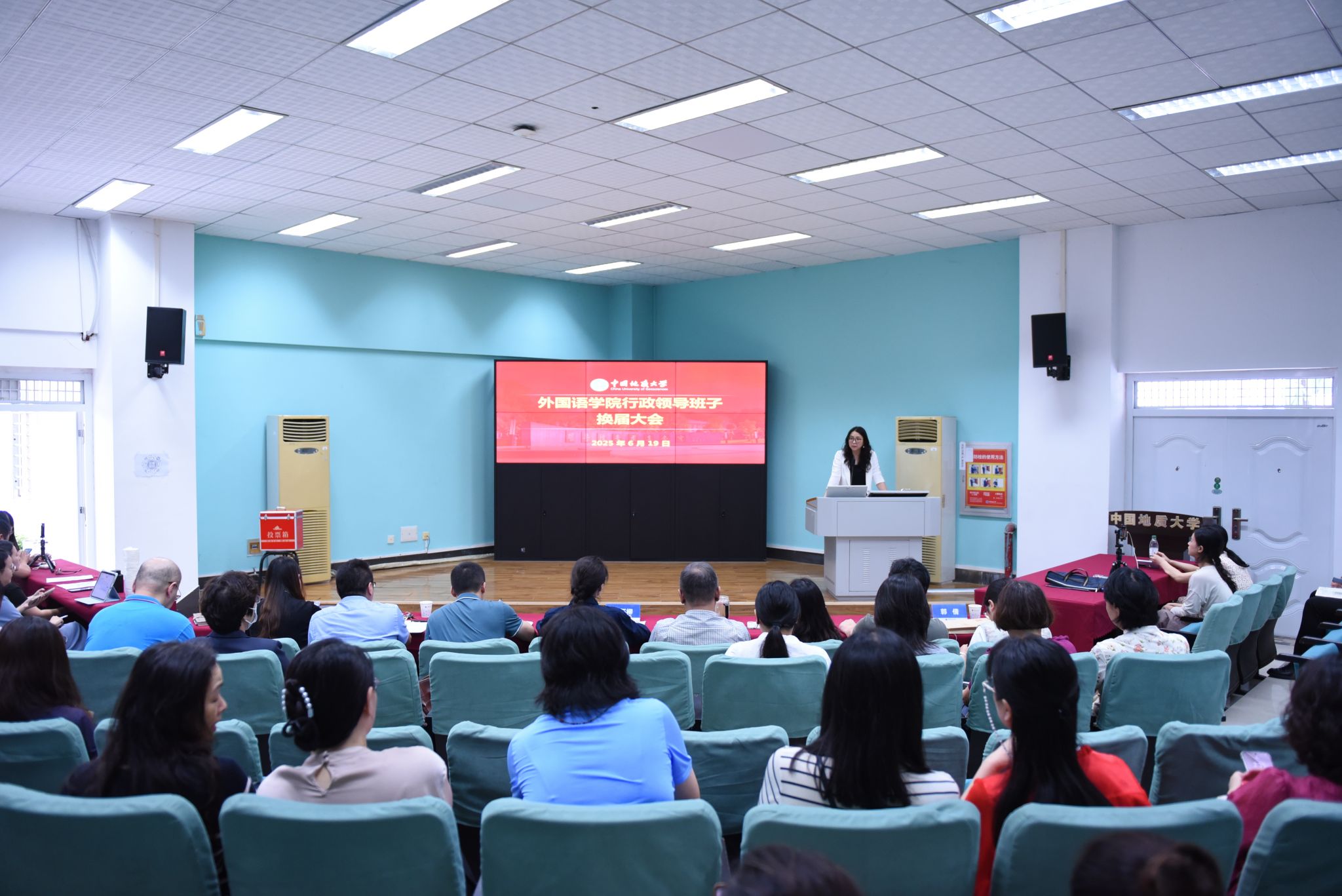 (通讯员 黎颖 摄影 戴薇)2025年6月19日,bat365中文官方网站行政领导班子换届大会在北一楼报告厅召开。正处级专职组织员蒋怀柳,党委组织部干部科郭倩,学院党政领导班子成员及全体教职工参加本次会议。学院党委书记傅苑主持会议。