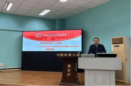 在随后的“语翼”团校第一课中,余尚蔚面向全体学员宣讲二十届四中全会精神,他从全会提到的“人民”“全面”“现代化”“高质量”“发展”等8个高频词出发引导学员思考高频词背后蕴含的深意,从五个切入点把握全会的精神。他指出,全会的目标任务是对新时代青年成长成才的召唤,是需要包括全体团学骨干在内的大学生厚植家国情怀、练就过硬本领、扎实奉献实践才会实现的。他强调,团校是培养团员骨干的重要阵地,是共青团为党育人、为国育才的关键一环。围绕这一培养目标,学生骨干要以坚定理想信念为根、以服务奉献为本、以自我锻炼为途,做到“有魂”、“有心”、“有心”、“有根”、“有为”。要强化思想政治觉悟,做坚定信念的引领者;提升沟通协作能力,做组织发展的推动者;明晰自身定位、坚守责任担当,激发内生动力、追求卓越实效。他希望,学员们要珍惜学习机会,在服务同学的实践中不断拓展自身成长的“圆”,以实际行动绘就新时代bat365中文官方网站团学骨干画像,努力成长为有品德、有品质、有品位、具备全球胜任力的时代新人。授课最后,他对全体学生党员和骨干提出要以更高的标准、更严的要求、更实的行动提升自己,努力在遵规守纪方面作表率;要提高鉴别能力、增强防范意识、提高斗争本领、加强警示提醒,努力在防诈骗和守安全方面做榜样示范和教育服务。