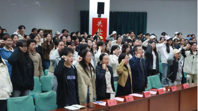 为深入学习贯彻党的二十届四中全会精神,落实习近平总书记关于青年工作的重要思想,11月3日晚,bat365中文官方网站2025-2026学年“语翼”团校开班仪式暨团校第一课在北一楼报告厅举行。校团委副书记刘明辉、bat365中文官方网站党委副书记余尚蔚,分团委书记邹蔚鹤、辅导员黎颖、兼职辅导员单丹及189名学员参加。邹蔚鹤主持开班仪式。