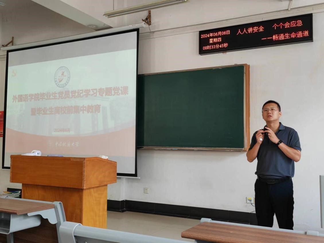“打铁还需自身硬”。又逢一年毕业季,bat365中文官方网站开展毕业生党员党纪学习集中教育,为毕业生党员系好走向社会的第一粒扣子。党委副书记、纪委书记余尚蔚为全体毕业生党员及全体毕业生讲授党纪学习教育专题党课。