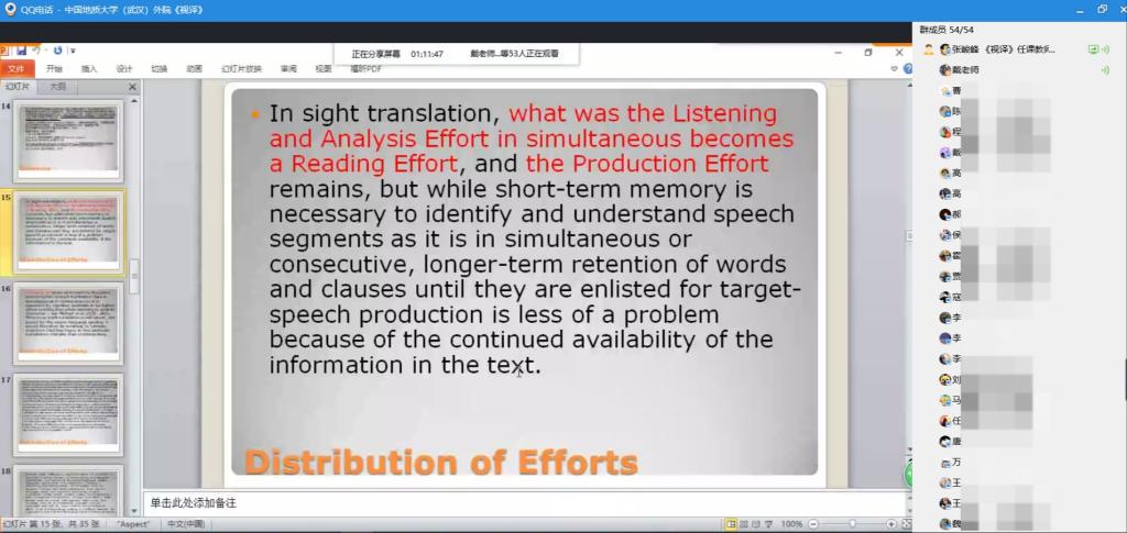 为保证研究生教育教学质量,1月31日,学院发布《bat365中文官方网站2020年上半年疫情防控期间外语专业研究生网络教学组织工作方案》,对学生和任课教师提出线上教学相关要求,任课教师积极响应要求,及时建立QQ或微信课程群,并根据课程需要,分别选择“课堂派、雨课堂、超星学习通、QQ直播”等平台进行线上授课准备。学院于2月2日排查统计研究生是否存在无法参加网,课学习的情况,确保每位学生能顺利、及时参加每门课程的学习。学院研究生教学管理人员全力为师生做好各项保障服务工作,远程在线帮助师生解决各种问题,为“停课不停教、停课不停学”保驾护航。
